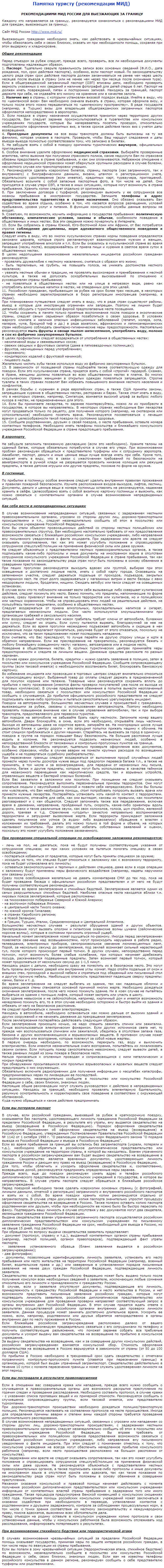 • Рекомендации МИД России