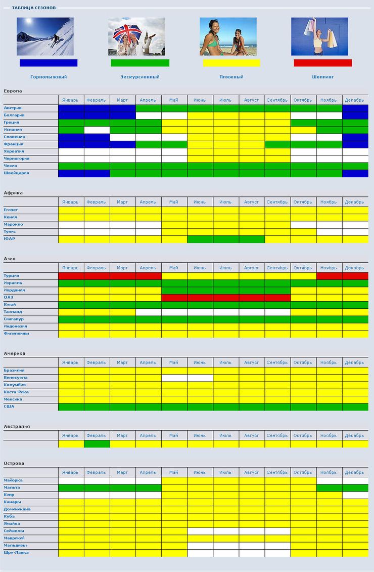 • Таблица сезонов